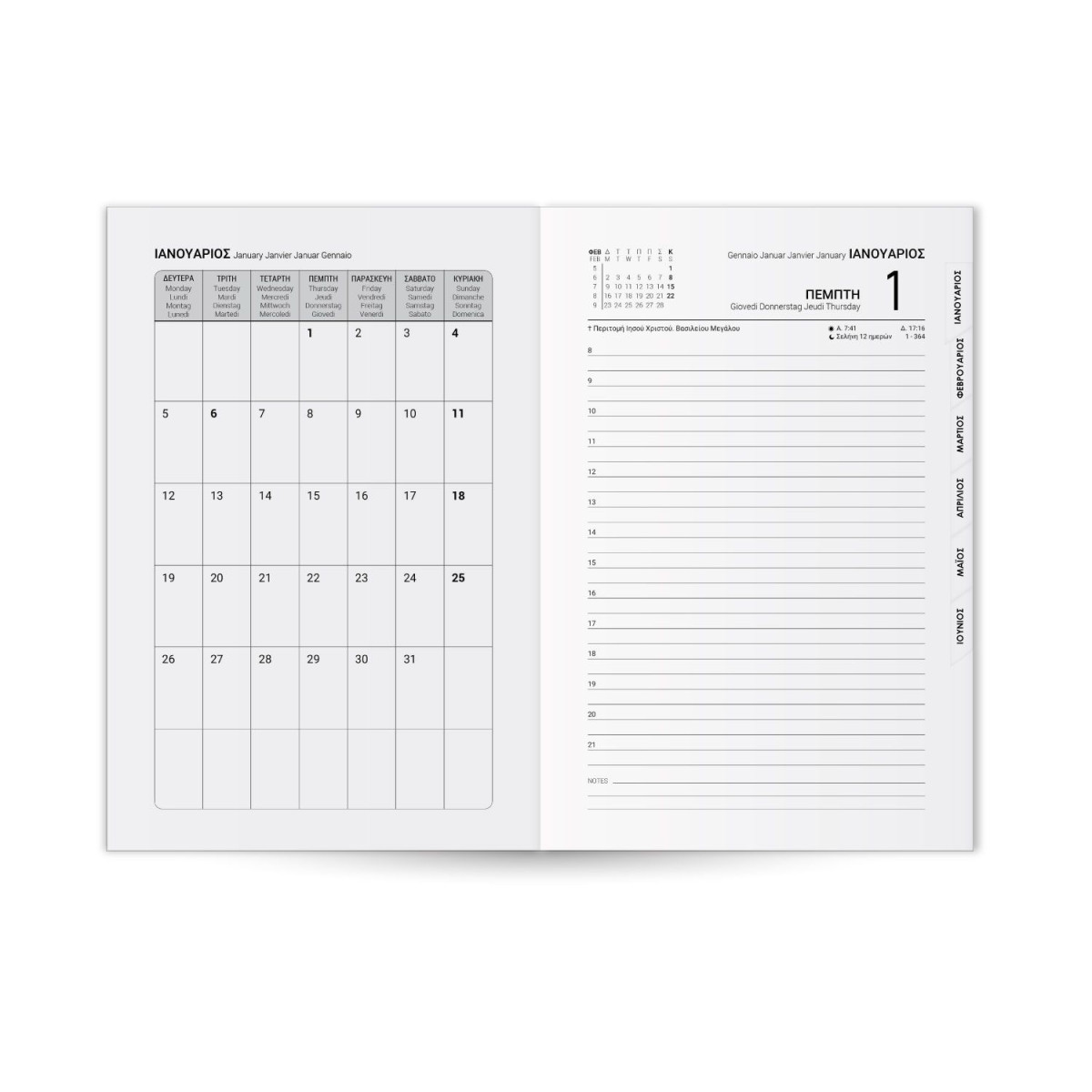Ημερολόγιο 2026 ημερήσιο βιβλιοδετημένο ,ευρετηρίαση μηνών 14x21 cm