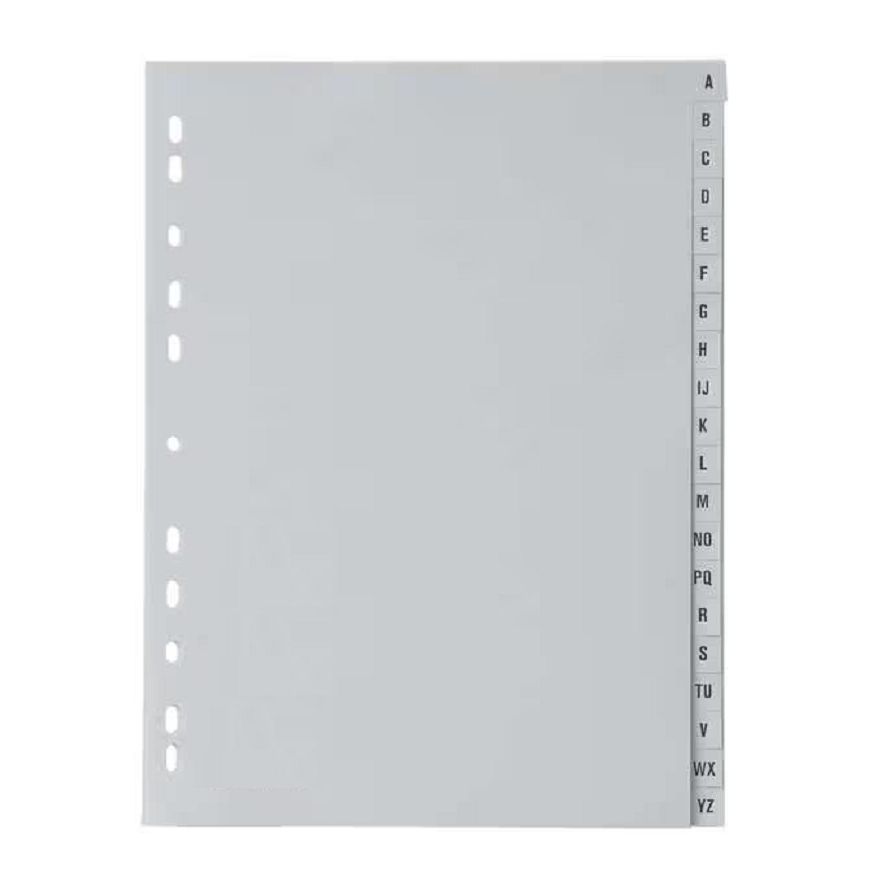 - Πλαστικό αλαφαβητικό ευρετήριο με λατινικούς χαρακτήρες, για ευρετηρίαση θεμάτων από το Α εως το Ζ