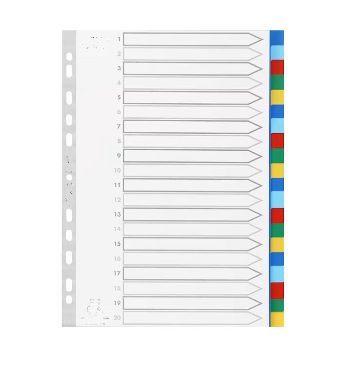 - Χρωματιστό ευρετήριο 20 θεμάτων από λεπτό πλαστικό κατάλληλο για την αρχειοθέτηση των εγγράφων