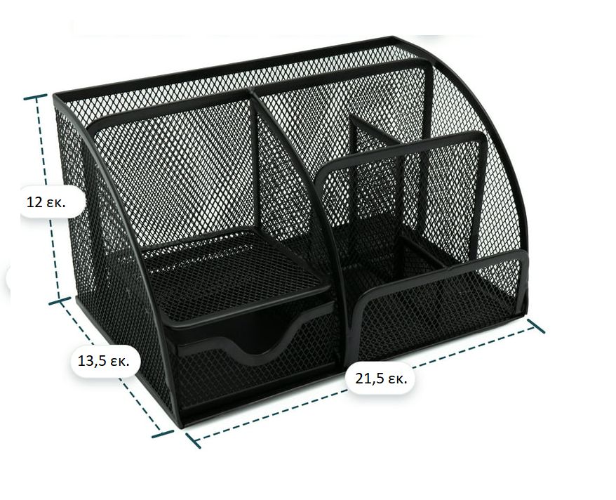 - Αποτελείται από θήκη για τη γραφική ύλη, θήκη για χαρτάκια σημειώσεων, θήκη συνδετήρων και συρταράκι