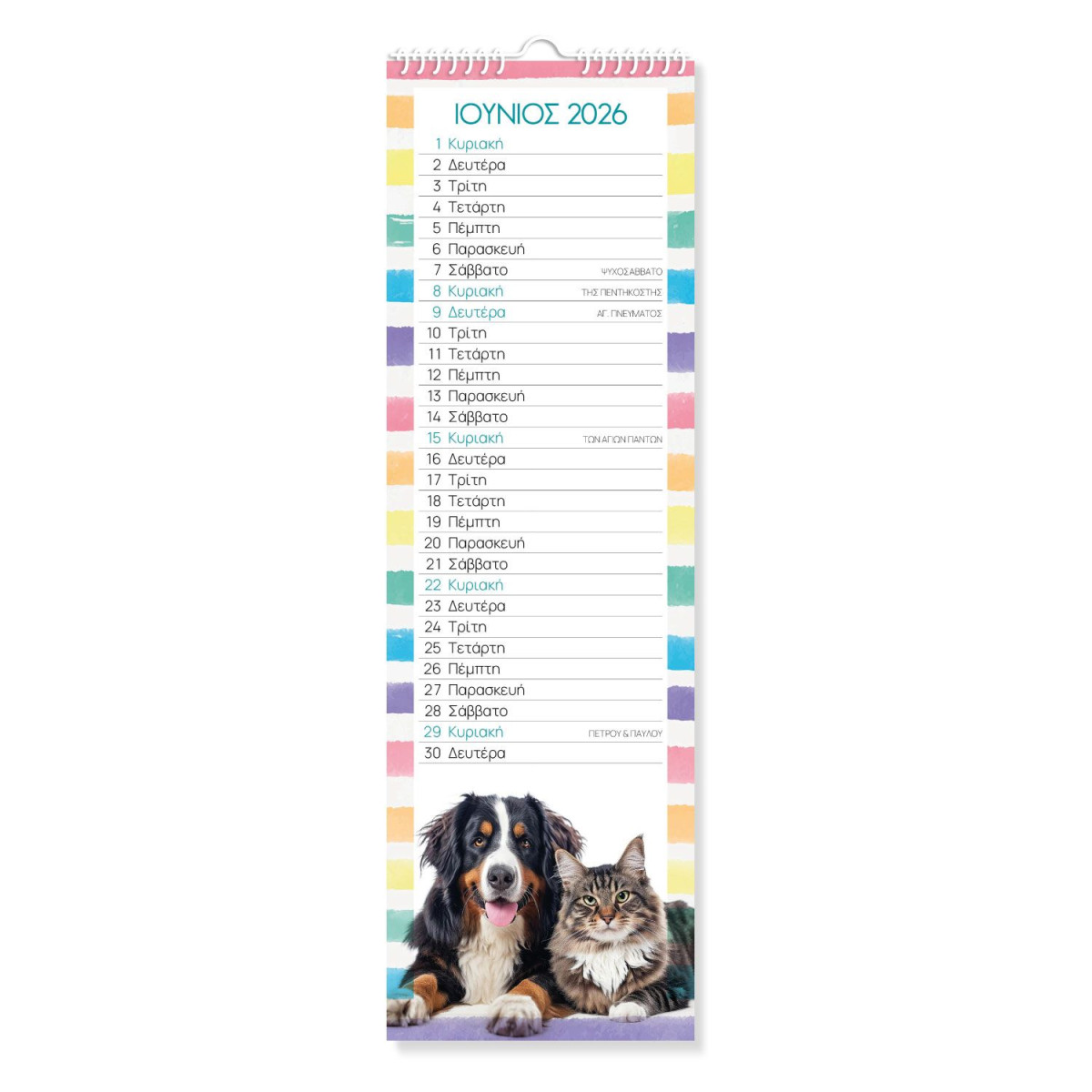 Ημερολόγιο τοίχου σπιράλ 2026 11x31 cm 12 φύλλο με ζωάκια