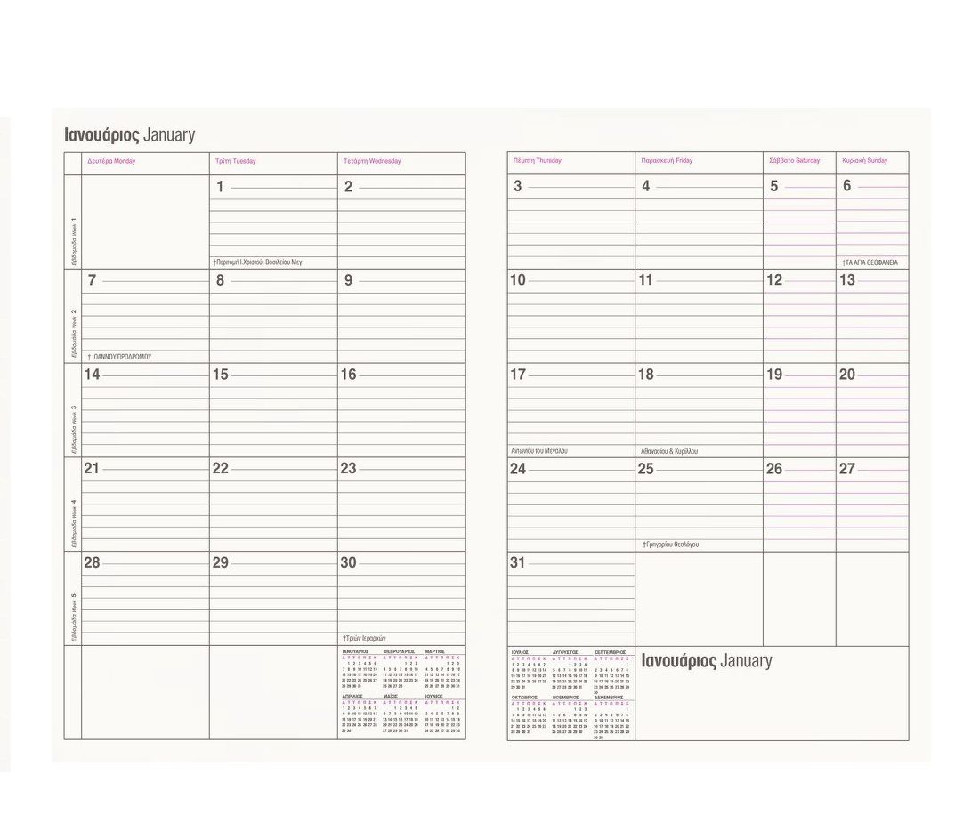 Ημερολόγιο 2026 πλάνο μινιαίο 21x29 cm