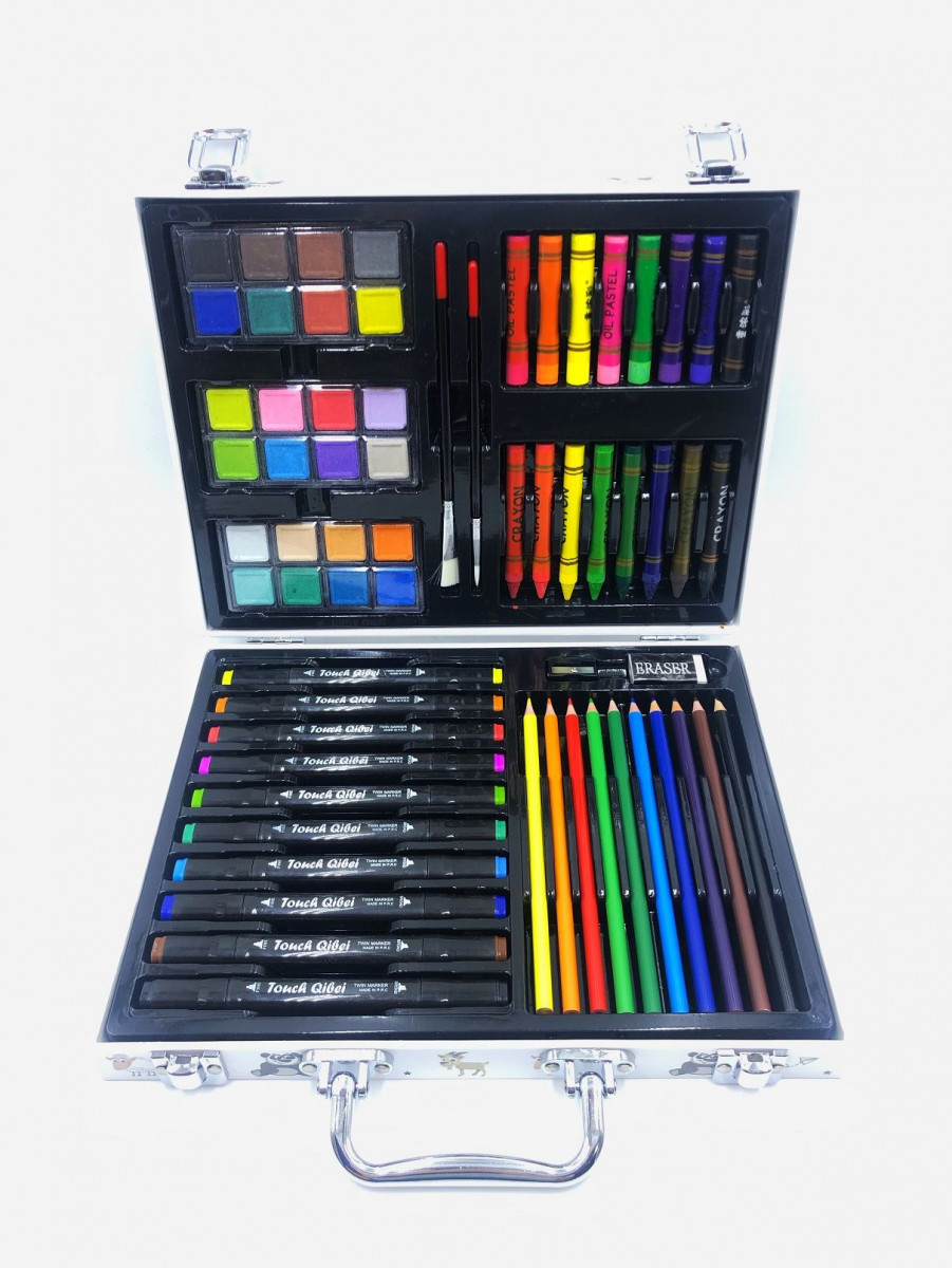- Περιλαμβάνει 10 μαρκαδόρους ζωγραφικής διπλής γραφής ( λεπτής και χονδρής γραφής ), 10 ξυλοχρώμτα μεγάλα , 16 λαδοπαστέλ, , 24 νερομπογιές, 2 πινέλα, 1 γόμα, 1 ξύστρα,