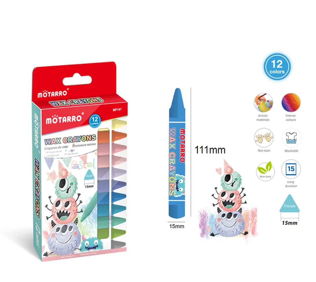 - Η συσκευασία περιλαμβάνει 12 κηρομπογιές που ακονίζονται σε 12 χρώματα!